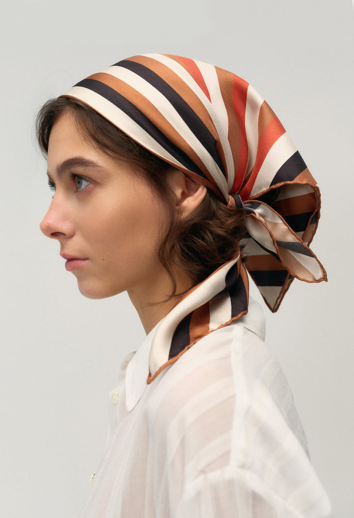 Van Hise reflects a universe where light and structure coexist. Each scarf is slowly crafted in the Mediterranean using high-quality Italian silk twill, finished with hand-rolled edges. A dialogue between the chromatic warmth of Barcelona and the bold lines of New York.